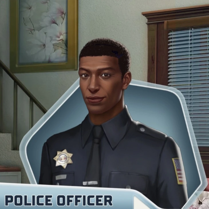 He takes your statement regarding Valerie's death and expresses sympathy that this was your introduction to the neighborhood. You hear him tell another officer it looks like Valerie died of a heart attack. His character model resembles Officer Keith from Baby Bump.