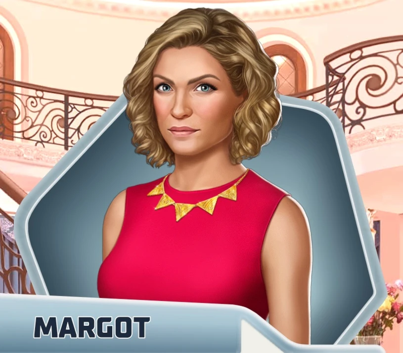You first meet Margot when you, your family and friends travel back to Auvernal, this time on Via Imperii business. She is the one who arranged for your helicopter ride from Bradshaw and Isabella's home to the palace, and the hotel where you and your loved ones will stay the night. When you talk to her one-on-one, she tells you that she is the Via Imperii's pick for Queen and this is a test for you. If you choose her, she is happy and gives you information about The Voice.