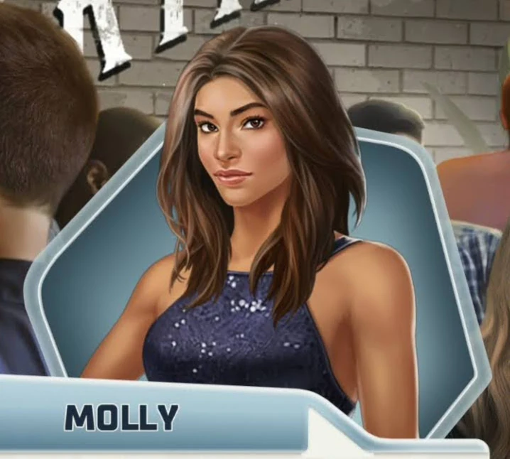 Molly is one of the company's clients and the matchmakers' next task in the competition. She is an influencer who started out with online makeup tutorials and now has her own makeup and clothing lines. She is looking for a Prince or Princess Charming who is down to earth. She likes to live luxuriously and wants someone who is okay with that but not a diva. Her character model resembles Britney.