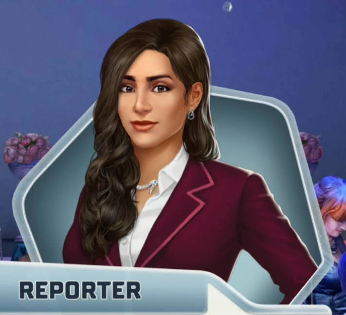 She is one of the reporters present at the Valentine's Day party for Two's Co. Matchmaking Services. She asks Veronica Roberts who will be replacing her as Two's Co.'s CEO. In Chapter 13, it is revealed she is a reporter for the celebrity gossip talk show, TMI.