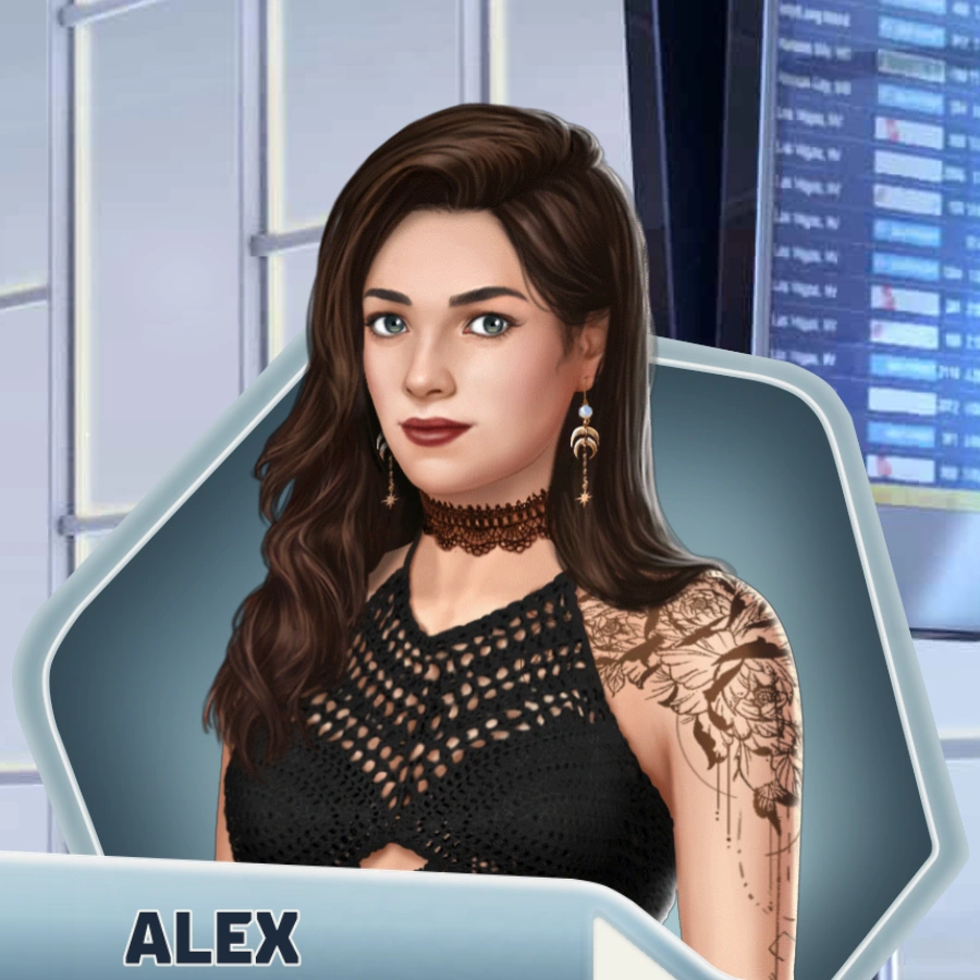 His/Her gender depends on the gender chosen for Darian. Male Alex resembles a version of Gavin Covington from Baby Bump, and female Alex resembles Mara from Kindred.
