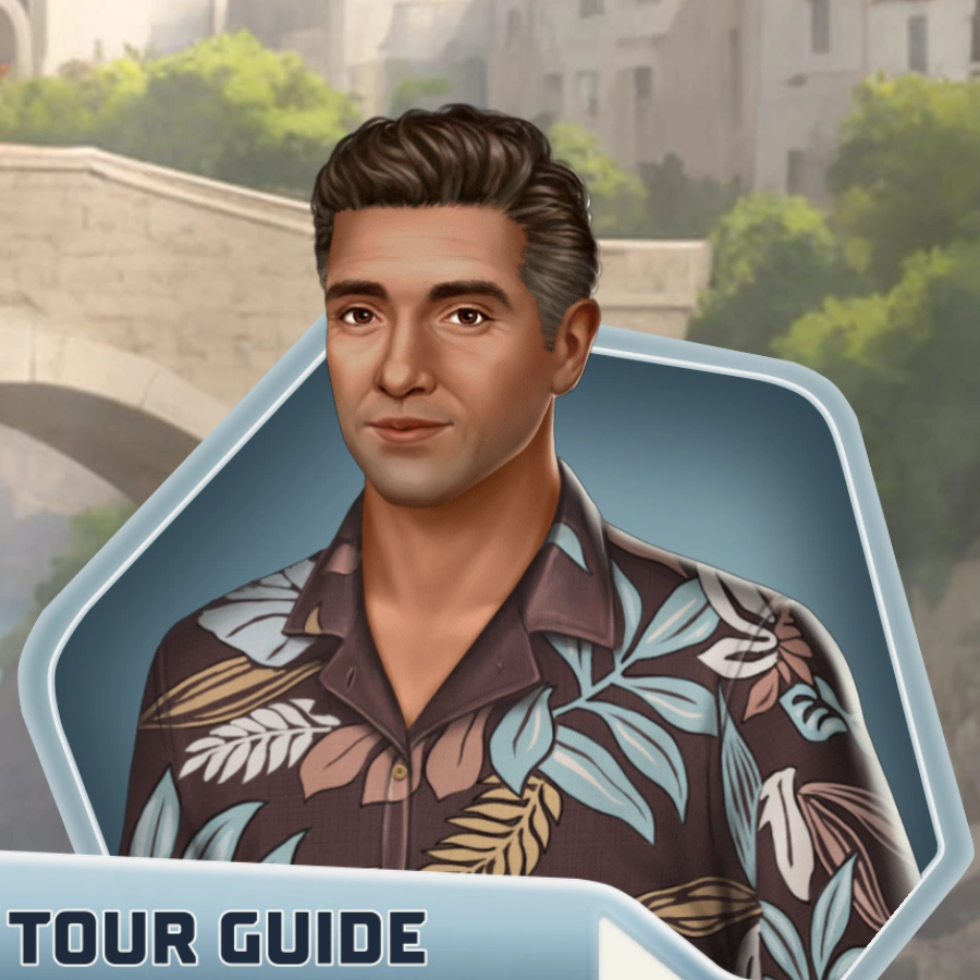 He is the tour guide on the couples' romantic tour. His character model resembles a version of Bill from Sunkissed.