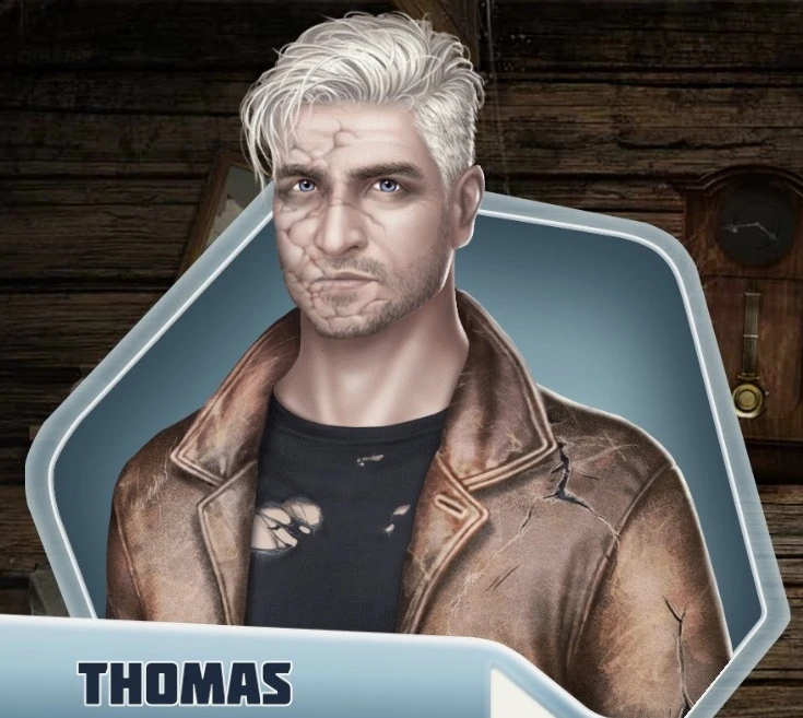 After she was exiled by The Fate and forced to live alone in a weathered cabin in the swamps for 10 years with only the company of revenant animal familiars , Cassiopeia found his body - dead, waterlogged, and ruined - washed ashore behind her home. He had only been dead a week or so, and so she used her powers to bring him back to life. For about a year, she helped "heal" Thomas, stitching his flesh back together, helping him relearn to walk and move, and she fell in love with him, believing that he was her soulmate. He convinced her that he loved her too, and influenced her to create a bloodwraith to destroy the darkness that plagued their world. He claims to hate supernatural creatures due to being killed by one, and views all of them as abominations and monsters that need to be wiped out. He made Cassiopeia believe in his words that supernatural beings need to be wiped out, with her reciting his words during her speech to you, despite both their natures as supernatural beings. In Chapter 10, he reveals that he has no feelings for her other than contempt and disgust, that he could never love an abomination such as herself, and releases the bloodwraith to kill her.